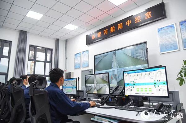 在船閘的中控室,可以在大屏幕上清楚地看到航道的運行情況、每艘船所在的位置以及載重等信息。唐柱閂在手機上打開掌航通軟件告訴記者,船員通過這款軟件在手機上就能繳費過閘,不用下船繳費,30分鐘就能完成過閘。